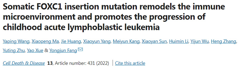 | 3 名急性淋巴性白血病 ( Acute lymphoblastic leukemia, ALL ) 兒童和配對 control 的骨髓樣本,進行 SureSelect V6 全外顯子基因分析 ( Whole Exome Sequencing, WES ),找到 10 個共同突變,確認出 FOXC1 基因發生 insertion ( H446HG )。 |